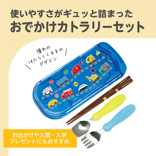 EDISONmama 兒童男孩攜帶式餐具叉勺筷子套裝帶盒(工作車)日本製造