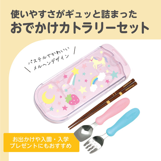 EDISONmama 兒童女孩攜帶式餐具套裝帶盒(粉色 Marchen)日本製造