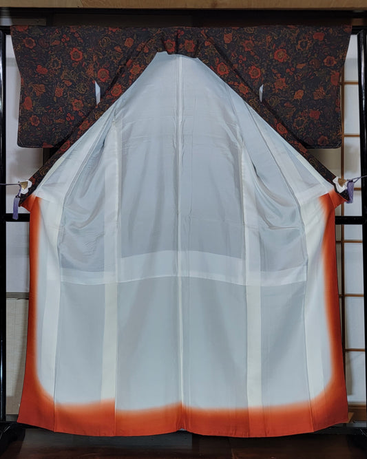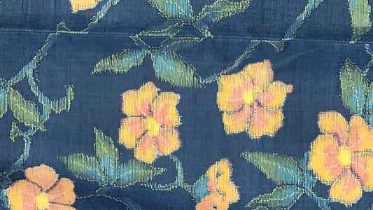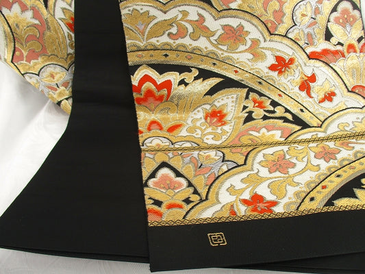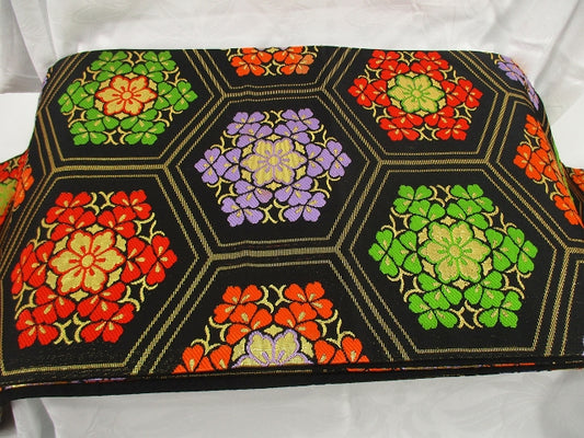 日本和服腰帶,黑色背景花卉刺繡,KIMONO OBI