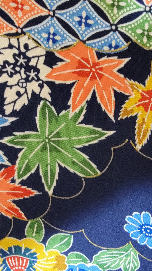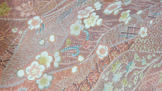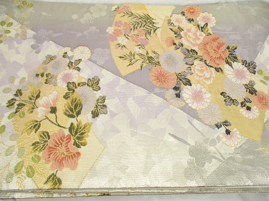日本和服腰帶扇子和花朵刺繡 KIMONO OBI OUGI