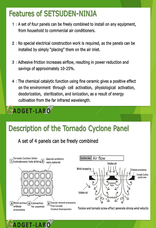 無需施工,安裝方便,1套4片節能節電面板“節能忍者”,家用商用,日本專利